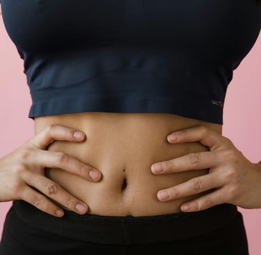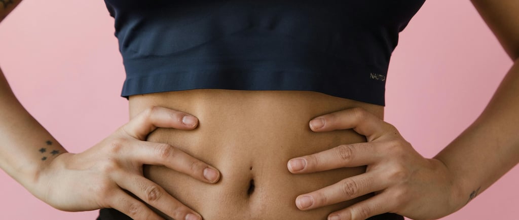 Start by relaxing your body and activating your core. Sit or lie down comfortably, place one hand on your stomach, inhale deeply through your nose letting your belly rise, then exhale slowly through your mouth. Why it works: This helps relax the digestive system and reduces tension that can contribute to bloating.