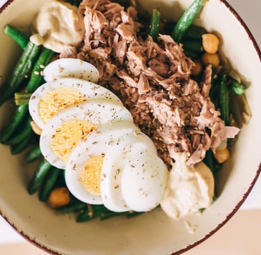 How to make it: Drain the tuna, mix with Greek yogurt, chop cucumber, and combine everything. Serve over lettuce.